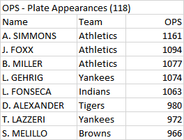 1. Al Simmons, Philadelphia Athletics (Prev: 1) (.362/.409/.752, OPS: 1.161; Other highlights: 15 HR, 52 RBI, 36 runs) - Can Simmons win a Triple Crown? He remains firmly in control of the top spot on this list.